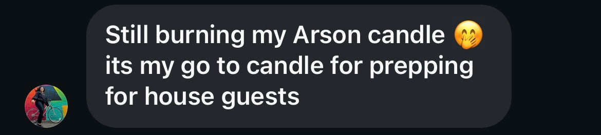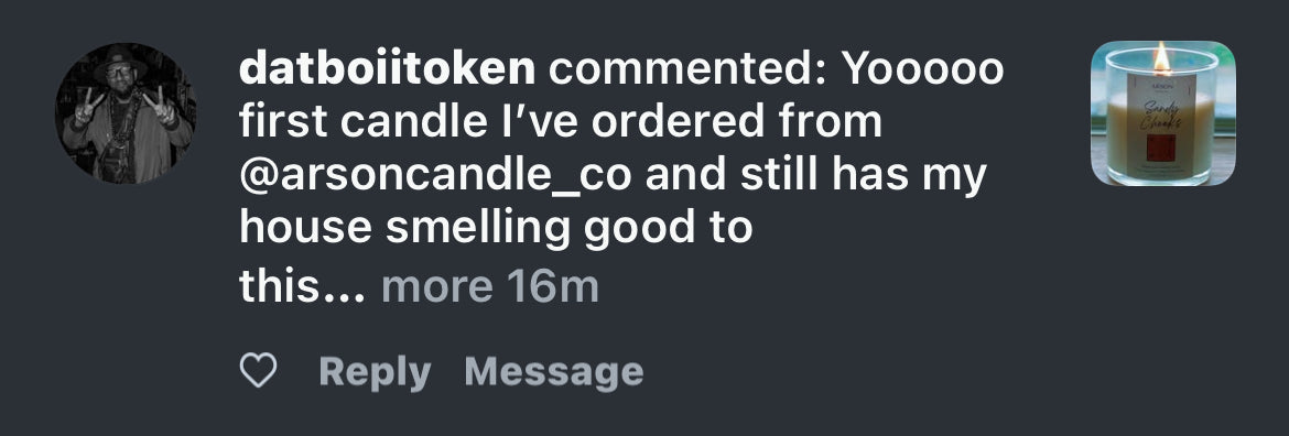 First candle I’ve ever ordered from Arson…still has my house smelling good to this day!